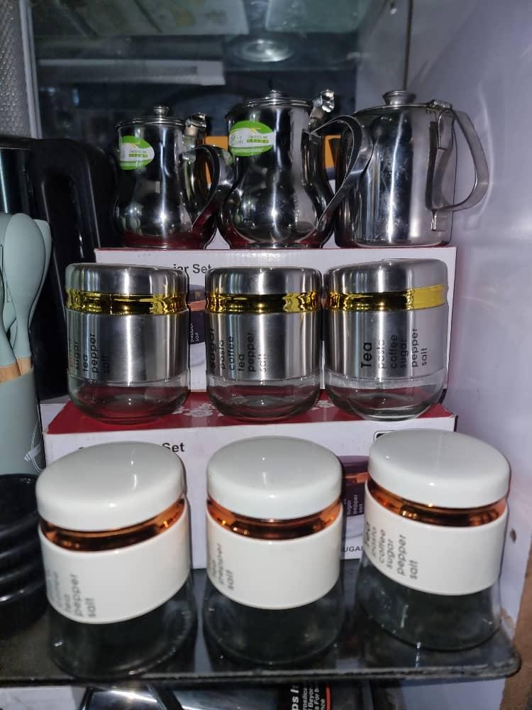 Coffee, Tea and Sugar Bowl set of 3 (white and bronze)